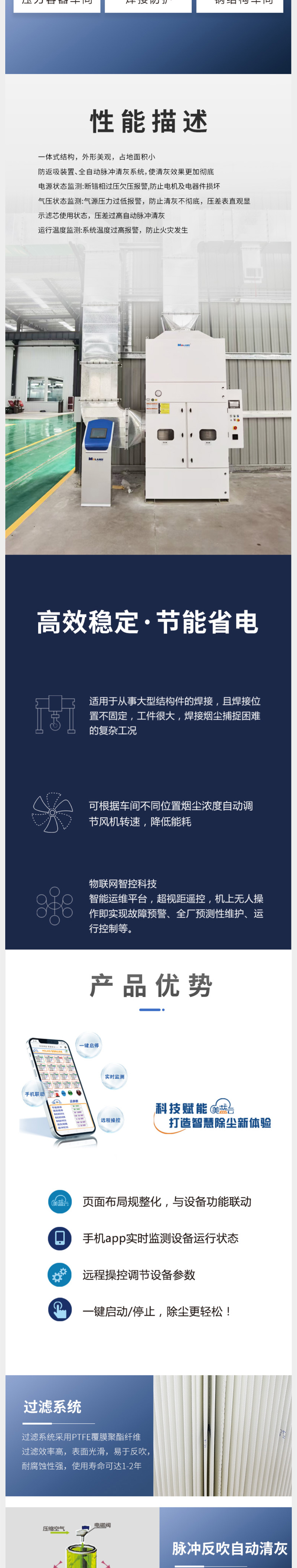 吹吸式車(chē)間除塵設備適用于從事大型結構件的焊接,且焊接位置不固定,工件很大,焊接煙塵捕捉困難的復雜工況